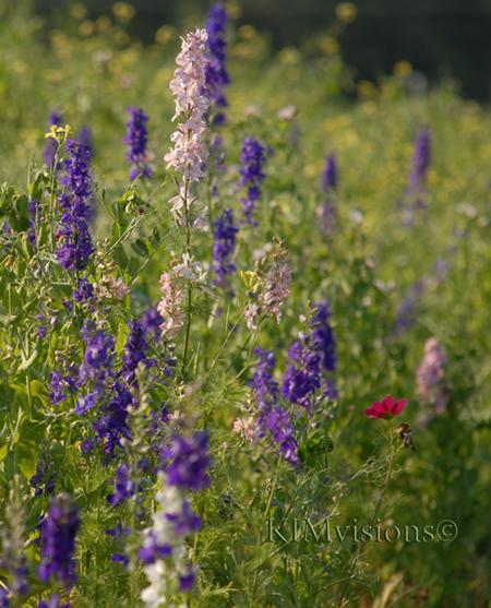 Larkspur with a lone Cosmos